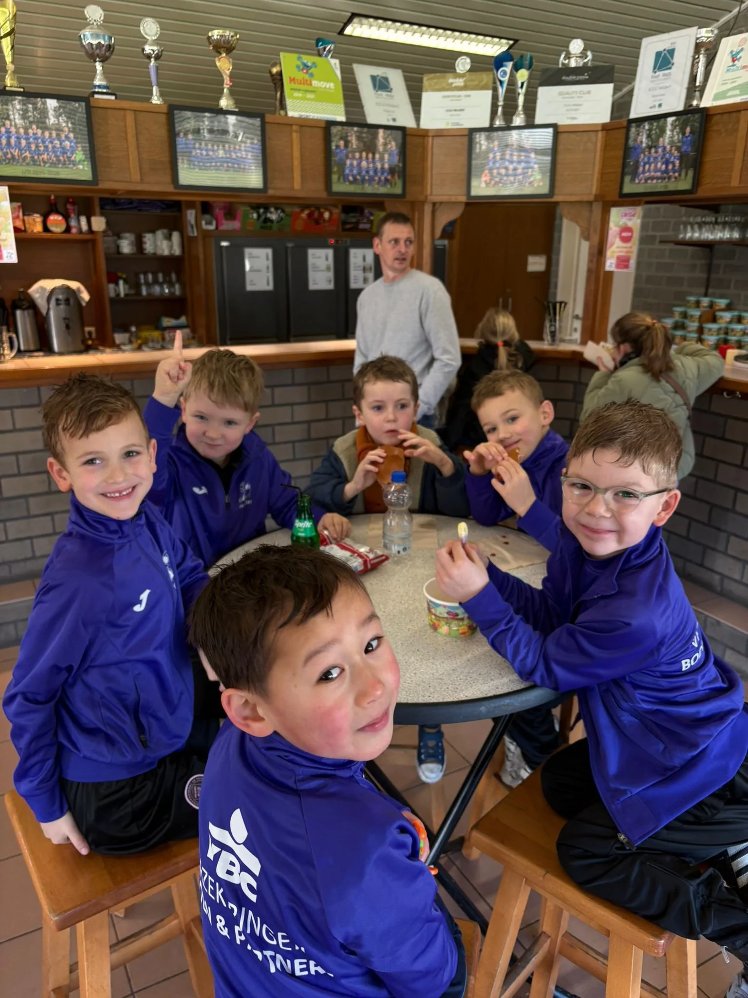 U6 / Wildert vs. Achterbroek 24 januari 2026 | Tweede wedstrijd in Wildert De winterzon stond stralend boven het veld toen onze U6-ploeg zich voor de tweede keer verzamelde voor hun wedstrijdjes. Voor sommige kindjes, zoals Tyson, was het best een spannende dag: de allereerste keer écht op het veld in wedstrijdvorm. De kou voelde iedereen wel, maar de zon maakte alles goed en zorgde voor een vrolijke sfeer vanaf het eerste fluitsignaal. Achterbroek was met slechts vier spelertjes, maar dat mocht de pret absoluut niet drukken. Onze Wildertjes hadden er maar liefst acht, waardoor er op drie veldjes tegelijk gespeeld kon worden; twee keer tegen Achterbroek, en één veldje puur voor Wildert tegen Wildert, ideaal om nog extra te oefenen. Vanaf het begin was duidelijk dat iedereen zich volledig gaf. Er werd gelopen, gepast, gelachen en vooral héél hard genoten. De samenwerking was top: er werden high-fives uitgedeeld na mooie acties, doelpunten en zelfs wanneer er eens iets misging. Nathan liet zien dat hij goed in vorm was en wist heel wat balletjes in het doel te krijgen, maar bovenal deed iedereen enthousiast mee en hielp elkaar geweldig. Langs de kant was het minstens even levendig: alle supporters zorgden voor luid applaus en bemoedigende kreten. Na de wedstrijdjes volgden natuurlijk nog de penalty’s, altijd een feestmoment waar iedereen met volle overtuiging mocht trappen. Na afloop was de glimlach bij iedereen even groot. De kindjes mochten nog kiezen tussen chips of snoepjes, en dat smaakte natuurlijk dubbel zo goed na al die inspanning. De sfeer in het team zit alvast helemaal goed. Het is een leuke ploeg vol plezier en nieuwe vriendschappen. Deze groep jonge voetballers groeit elke week een beetje meer samen en met zoveel enthousiasme belooft dat nog heel wat mooie matchen te worden!